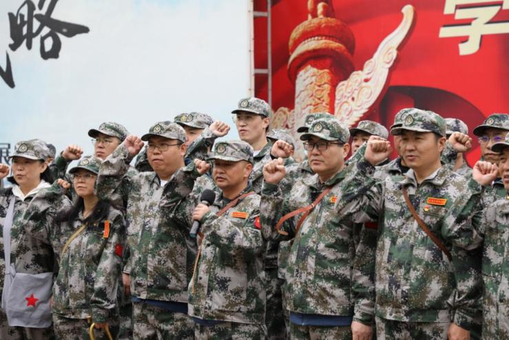 到達(dá)活動(dòng)出發(fā)點(diǎn),黨員身著迷彩服,氣氛莊重,整裝待發(fā)。出發(fā)前舉行了授旗儀式,全體黨員重溫了入黨誓詞。