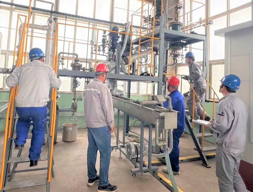 試驗(yàn)線在恢復(fù)階段可謂是困難重重,突擊隊(duì)發(fā)揚(yáng)“團(tuán)結(jié)協(xié)作,合力攻關(guān)”精神,發(fā)揮黨員的模范帶頭作用,使團(tuán)隊(duì)優(yōu)勢得到充分體現(xiàn),成員按各自的特長進(jìn)行分工合作,聯(lián)合生產(chǎn)部門確定工藝流程,閥門標(biāo)識;協(xié)調(diào)設(shè)備部門做好備品備件及設(shè)備修復(fù);聯(lián)絡(luò)研發(fā)部門確定實(shí)驗(yàn)原料數(shù)據(jù)配比等相關(guān)工作。在調(diào)試階段,他們不分晝夜堅(jiān)持奮戰(zhàn),極大地提升了攻關(guān)效率,最終試驗(yàn)線按期恢復(fù)完成。經(jīng)初步核算,自行改造恢復(fù)現(xiàn)有30L中試實(shí)驗(yàn)線成本支出為15萬元,遠(yuǎn)低于委外承包施工72萬元的報(bào)價(jià)。通過突擊隊(duì)的不懈努力,試驗(yàn)線在不到兩個(gè)月的時(shí)間內(nèi),已完成初步試驗(yàn)操作調(diào)整,并且完成了兩個(gè)新品種的試驗(yàn),包括熱熔膠聚酯切片合成試驗(yàn)和磨粉用聚酯切片合成試驗(yàn)。