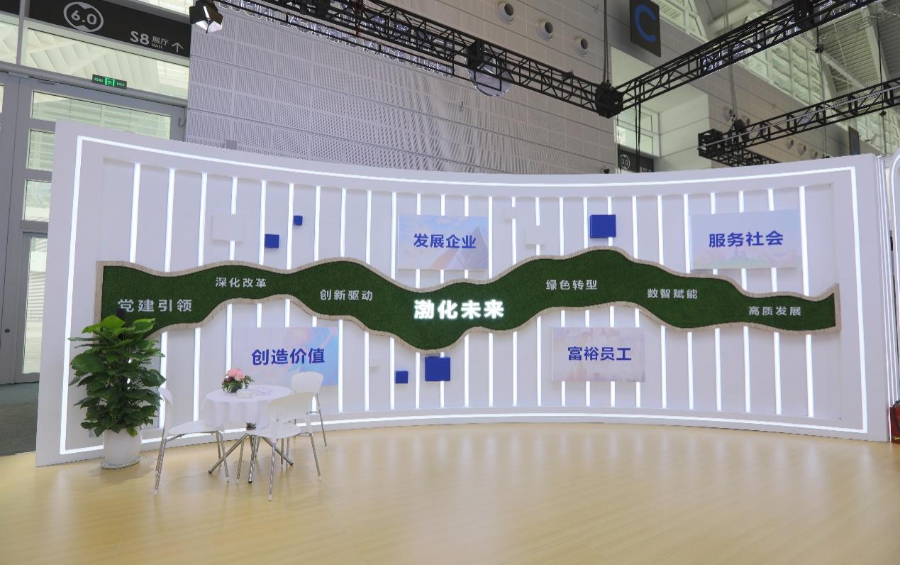 向陽而生,展臺藍色光流隱喻科技創新驅動貫穿始終,展現了渤化集團積極構建“一體四翼、三地協同、四化聯動、內外并舉”高質量發展新格局的使命擔當。聚力遠行,展臺智慧科技樹枝干延伸覆蓋產業版圖,展現了渤化集團作為天津市屬國有企業集團積極布局“新賽道”,尋求“新突破”,為高質量發展賦智賦能的新時代品牌形象。
