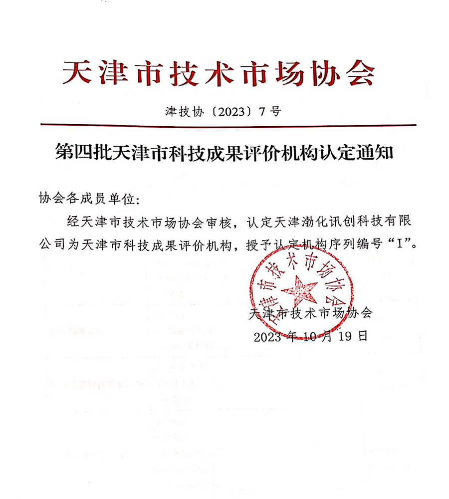 天津渤化訊創科技有限公司科技成果評價服務正式啟動