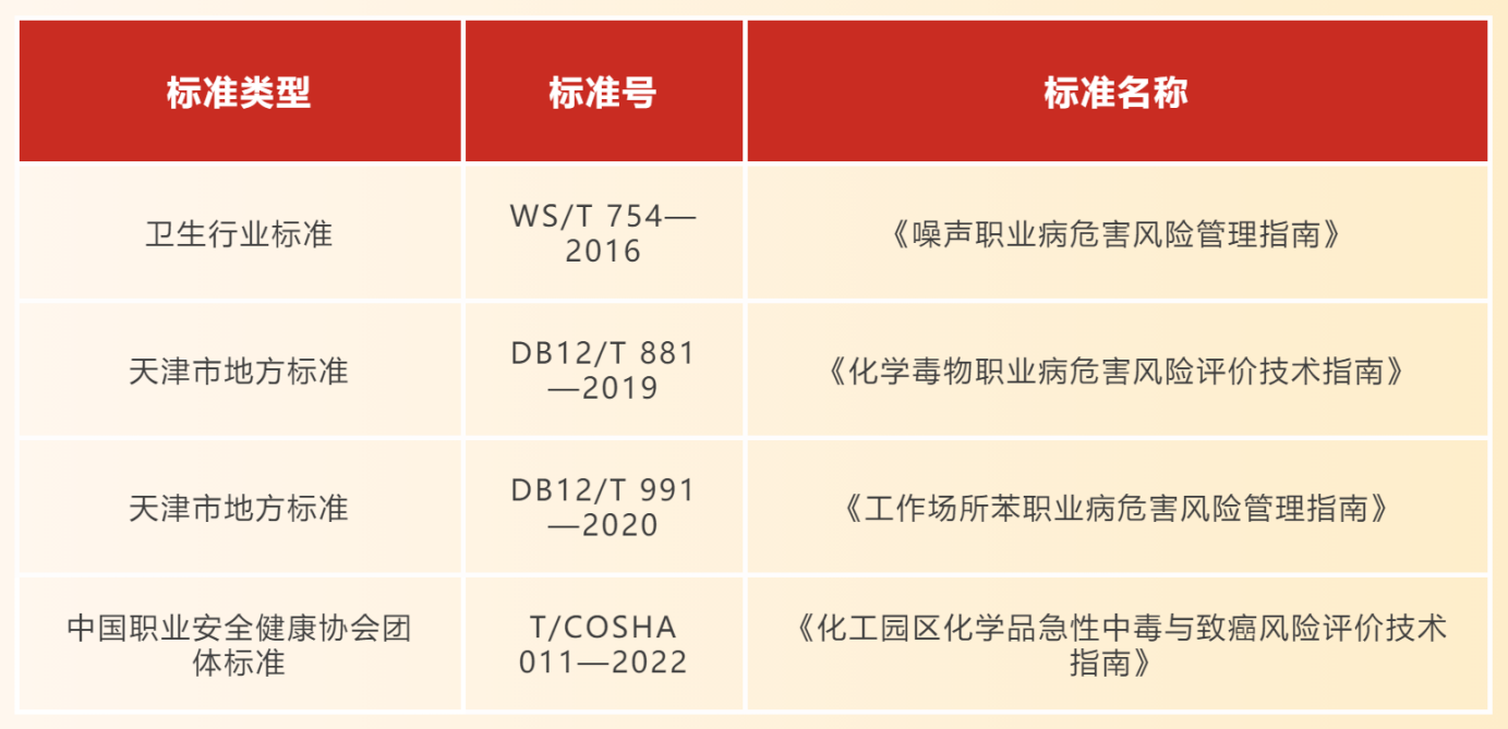 多年來,天津渤海化工集團有限責任公司勞動衛生研究所組成以工程技術和預防醫學專業人才為主的研究團隊,針對行業各類重點職業病危害風險管理方面存在的共性問題,除了此次立項的地方標準《工作場所高危粉塵職業危害風險管理指南》外,先后主持制訂了1項行業標準、2項地方標準、1項團體標準。