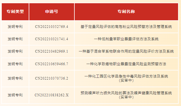 天津渤海化工集團有限責任公司勞動衛生研究所聯合渤化集團雙創基地管理運營公司天津渤化訊創科技有限公司共同設立《重點職業病監控預警關鍵技術專利培育》項目,圍繞重點職業病危害開展重點高價值專利布局,目前已申請高價值發明專利6項,其中4項已獲授權,2項在實審中,對我國職業病防治技術需求,重點開展風險評估、監測預警等相關技術研究,并建立了一套完整的職業病危害評估、風險預測及監測防范的研究應用體系。