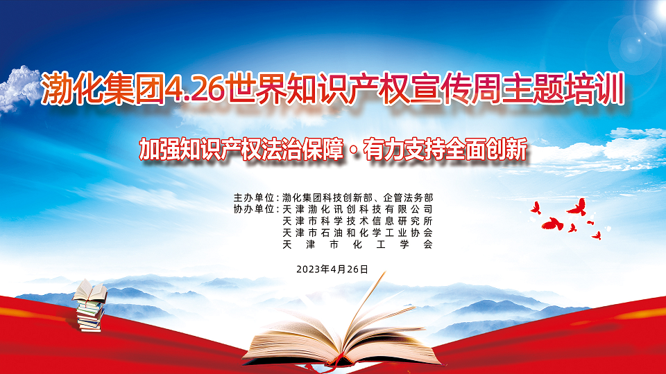 4月26日,渤化集團聯合天津市科學技術信息研究所、天津市石油和化學工業協會、天津市化工學會共同舉辦426知識產權宣傳周主題培訓。