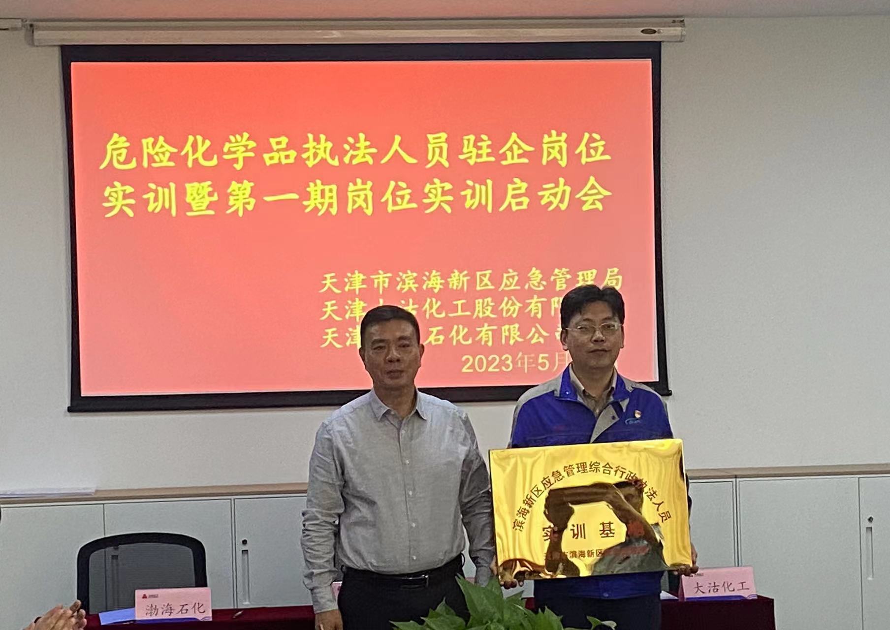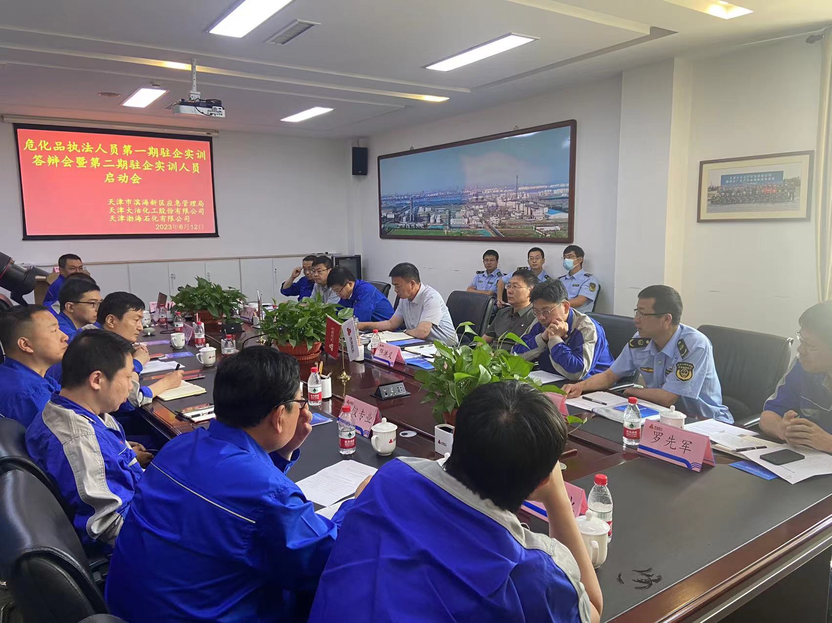 2023年6月12日,濱海新區危化品執法人員第一期駐企實訓答辯會暨第二期駐企實訓人員啟動會在天津渤海石化有限公司召開。