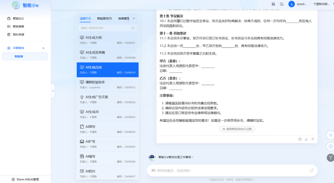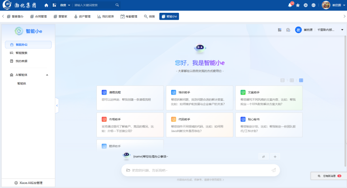 與此同時,集團(tuán)引入智能辦公助手,進(jìn)一步完善了企業(yè)的數(shù)字化辦公體系。其基于先進(jìn)的人工智能技術(shù),能理解自然語言,實現(xiàn)智能交互,為員工提供7×24小時的智能化服務(wù)。員工只需通過語音或文字與智能助手溝通,就能快速完成數(shù)據(jù)查詢、知識檢索、審批流程等日常辦公任務(wù),極大地提高了工作效率與協(xié)同能力。此外,還具備強大的知識圖譜與智能分析能力,能為企業(yè)提供精準(zhǔn)的信息推薦與決策支持,促進(jìn)知識共享與創(chuàng)新。