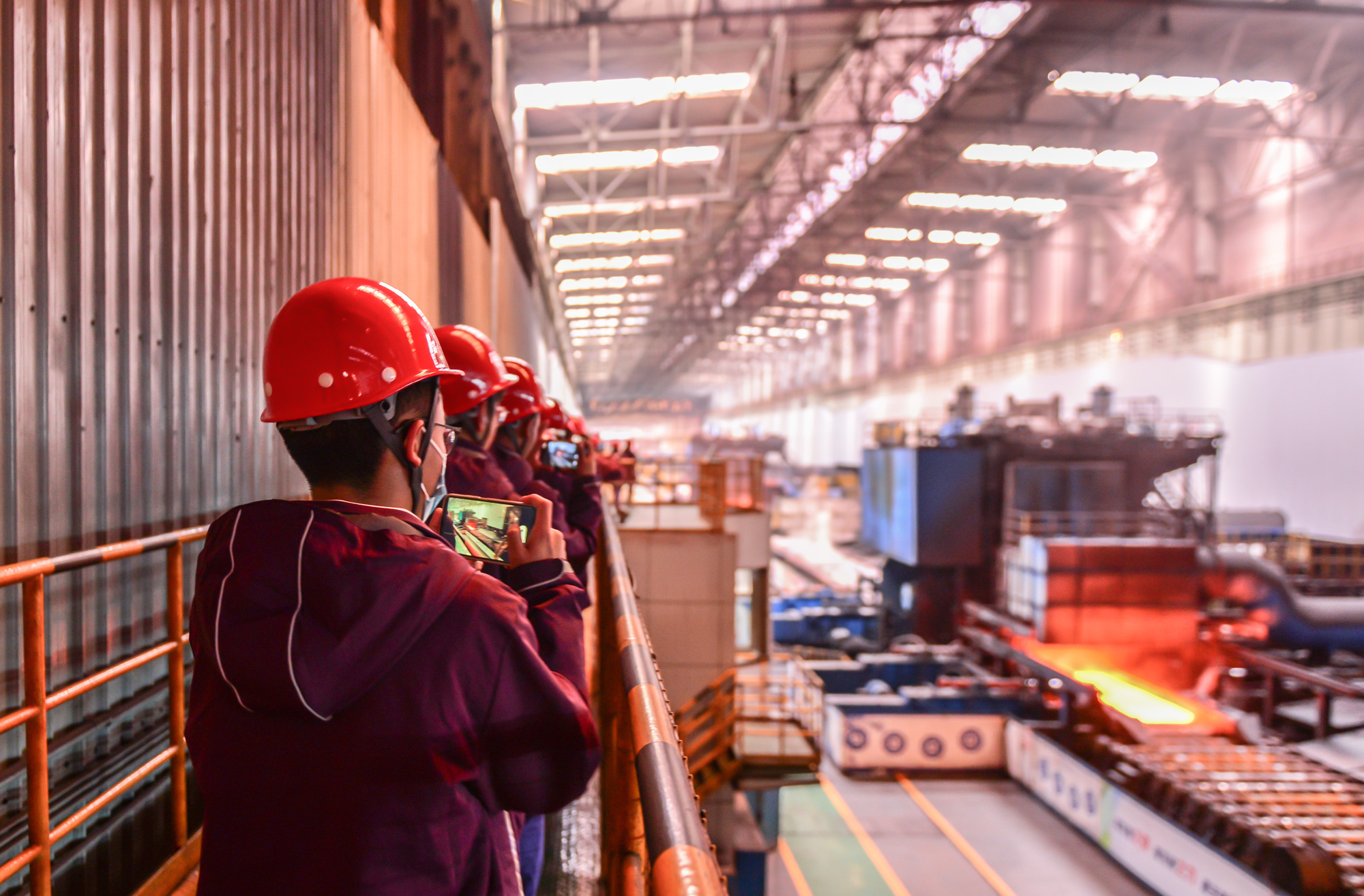 在生產車間,產線正運輸著被燒得通紅的鋼材。在參觀通廊上,學生們可以“沉浸式”了解鋼鐵的鑄造過程。“我們的工業游包括生產車間、企業文化展廳以及互聯網運行中心等點位,能夠讓大家從生產、調度、管控等方面,全方位了解‘鋼鐵是怎樣煉成的’?!辟Z小慧說道。